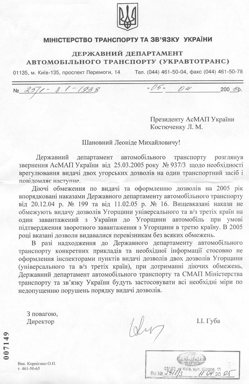 Шановні перевізники! Державний департамент автомобільного транспорту повідомляє що в даний момент не існує обмежень у видачі дозволів Угорщини універсального та в/з третіх країн на один завантажений автомобіль що прямує з України до Угорщини при умові підтвердження зворотного завантаження з Угорщини в третю країну.