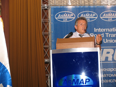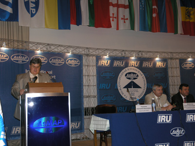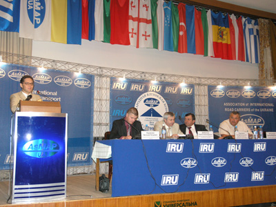 Далі дійшла черга й до президентів дружніх нам Асоціацій. Президент Асоціації Молдови Володимир Флоря, доречи він є Головою комітету по зв’язкам МСАТ з СНД, розповів про втілюване єдиного сертифікату зважування на теренах СНД. Микола Боровой, Президент БАМАП ознайомив про створення благоприємних умов для транзиту в Республіці Бєларусь. Президент асоціації грузинських міжнародних автоперевізників пан Чхєїдзе доповів про розвиток автоперевезень у напрямку Схід-Захід та про місце паромного сполучення у цьому процесі.