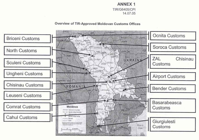 У додаток до інформації від 14.11.2006 року щодо обов’язкового в’їзду на територію Молдови через авторизовані пункти пропуску надаємо карту митних постів на території Молдови, які вповноважені здійснювати оформлення книжок МДП.