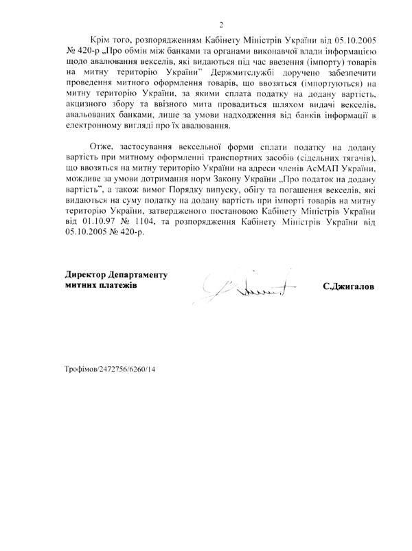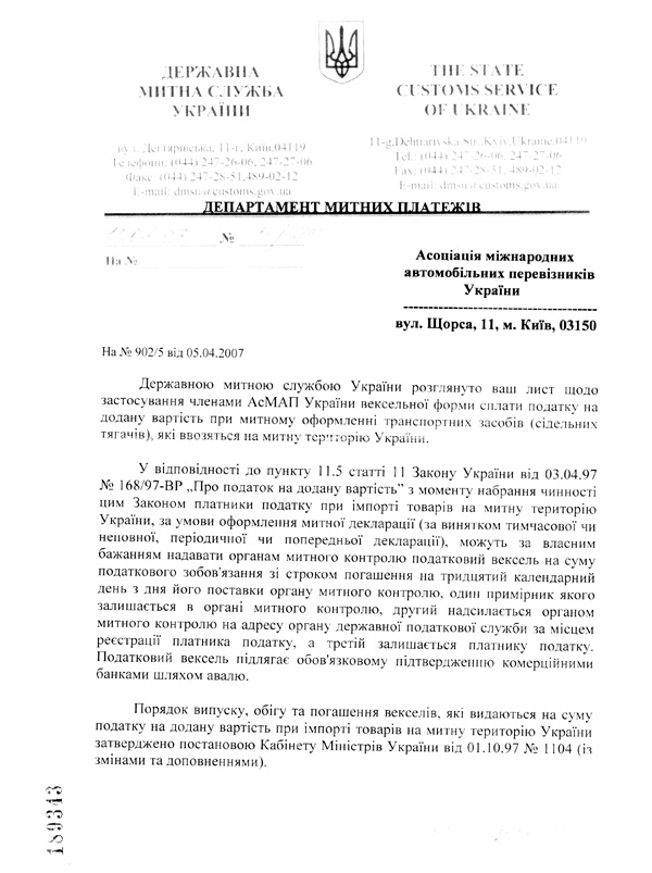 Останнім часом на адресу Секретаріату АсМАП надходять звернення учасників Асоціації, зокрема з Закарпатського та Київського регіонів, щодо відмови митними органами у оформленні ввезених автотранспортних засобів із застосуванням податкових векселів зі сплати податку на додану вартість, передбачених чинним законодавством України.