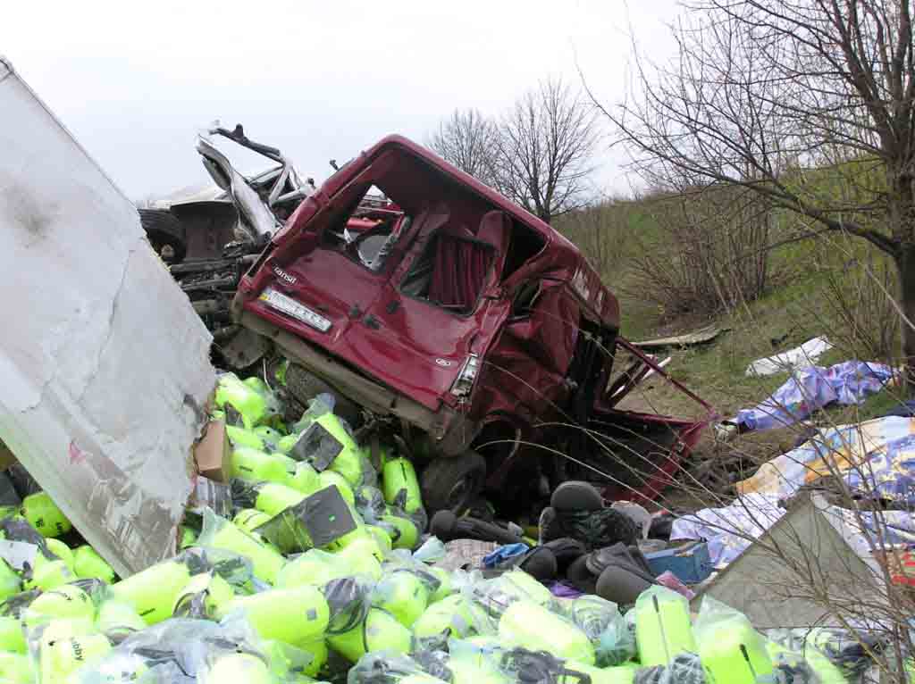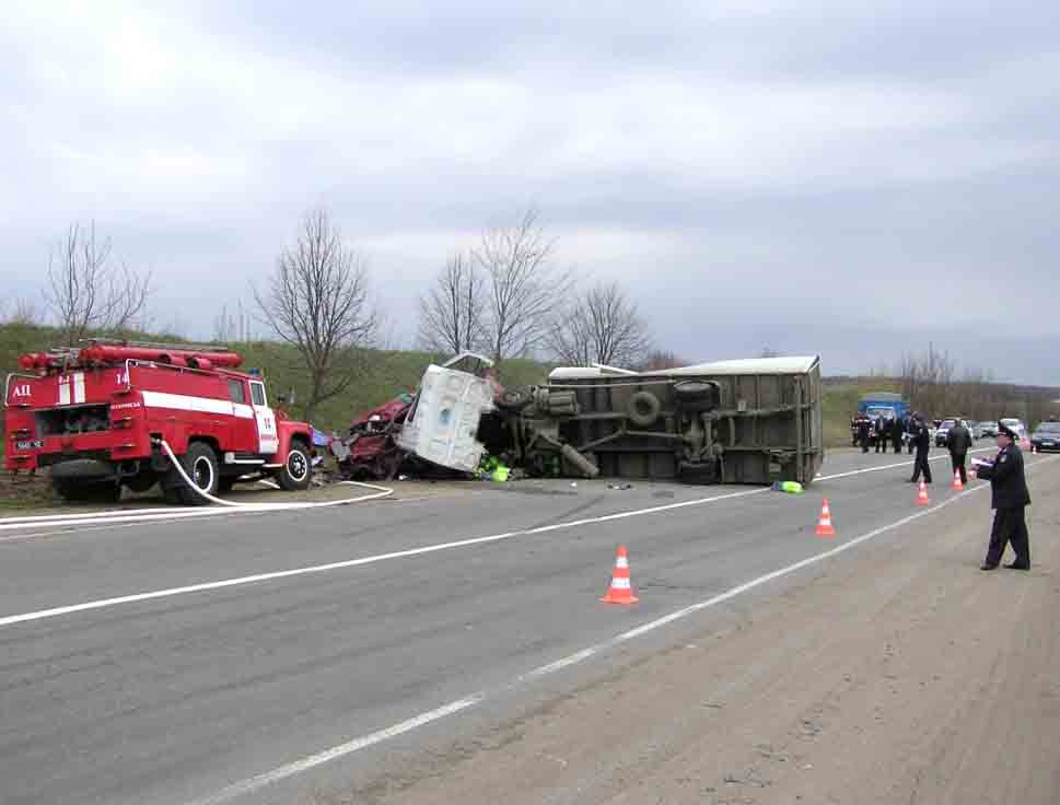 Водій вантажного автомобіля "Рено-Магнум", що належить ПП «Волинець Н.Л.», , перевозячи вантаж (оприскувачі) по маршруту Львів – м.Калинівка Вінницької області, 17 квітня ц.р. о 13-й годині 10 хвилину напрямку м.Хмельницького, на 202 км автошляху "Стрий-Кіровоград-Знам'янка" заснув за кермом і виїхав на смугу зустрічного руху, де зіткнувся з мікроавтобусом "Форд Транзит".