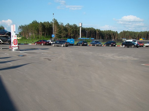 • велику автомобільну стоянку, яка здатна приймати групи туристів, що прибувають автобусами, машинами та для відпочинку водіїв вантажівок