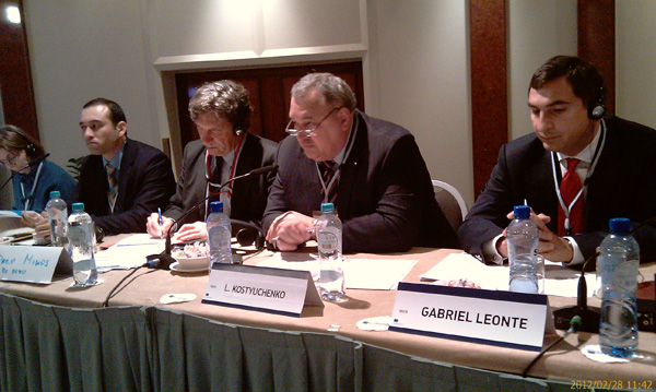 Леонід Костюченко у своєму виступі інформував присутніх про проблеми з якими стикаються українські перевізники при виконанні міжнародних перевезень: рутинні процедури отримання віз, простої на кордонах, дефіцит дозволів, відсутність належної інфраструктури для забезпечення умов праці і відпочинку водіїв, необґрунтовані тарифи перевезення вантажівок на поромних лініях Чорного та Каспійського морів а також про бачення міжнародних перевізників шляхів вирішення цих та інших питань та роботу Асоціації спрямовану на це.