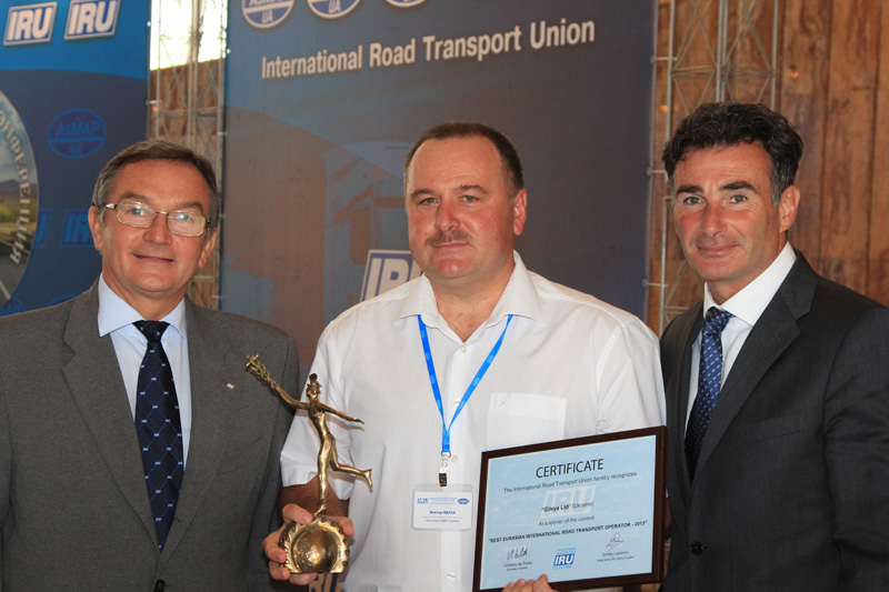 На другий день роботи Конференції відбулась церемонія нагородження переможців конкурсу «Кращий міжнародний автоперевізник Євразії-2013». Приємно відзначити, що серед нагороджених цією почесною відзнакою МСАТ був і представник України. Це – автотранспортне підприємство «Гілея» з Хмельницького. Щиро вітаємо колектив та керівника підприємства Віктора Йосиповича Ядуху з цією почесною відзнакою.