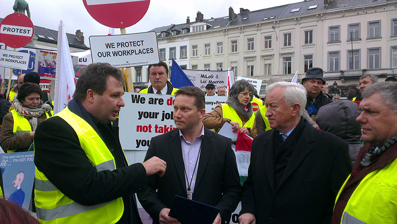 25.03.2015 р. в Брюсселі пройшов протестний пікет перевізників низки країн ЄС щодо впровадження мінімальної заробітної плати у Німеччині та Франції
