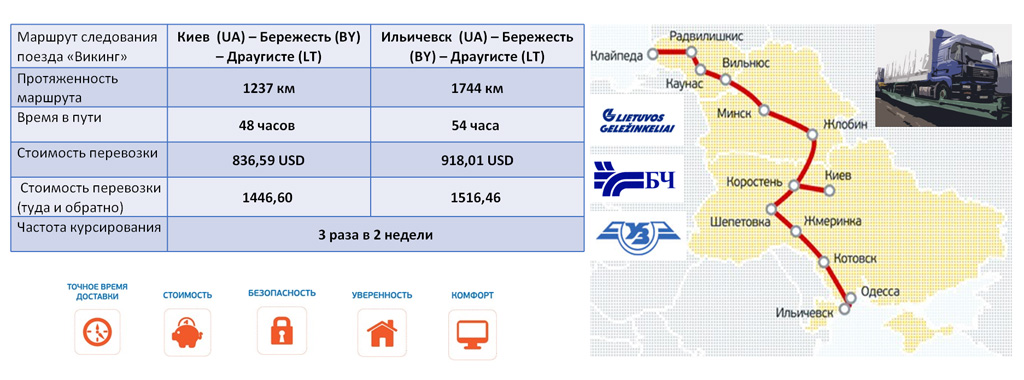 С 27 сентября 2015 года Украинский государственный центр транспортного сервиса «Лиски» организовывает движение на регулярной основе поезда комбинированного транспорта «Викинг».