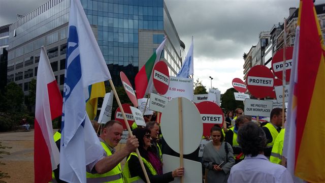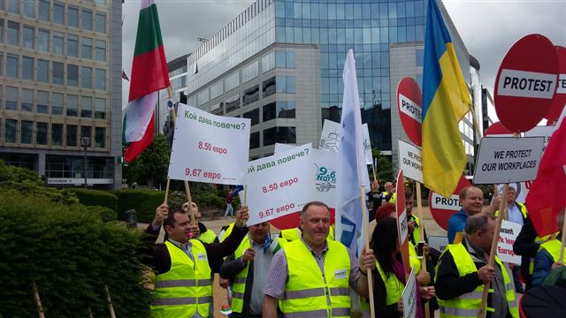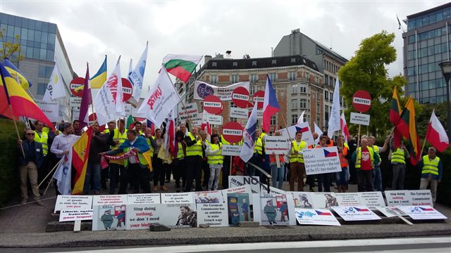 Так, вчора, в Брюсселі в центрі міста на площі Шуман напроти будівлі Європейської Комісії та Ради ЄС відбувся ще один протест європейських автоперевізників проти введення французьких і німецьких законів про мінімальну заробітну плату. Раніше перевізники протестували в Брюсселі в березні 2015 року.
