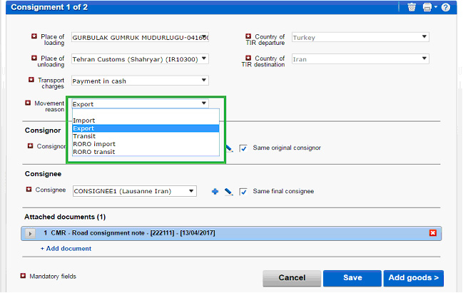 З метою дотримання всіх відповідних вимог турецької митниці, у програму TIR-EPD були внесені додаткові можливості.