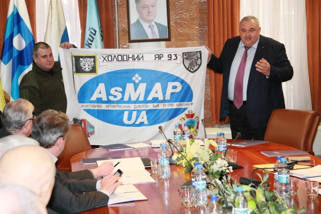 Присутній на засіданні Ради командир реактивного артилерійського дивізіону 93 окремої механізованої бригади підполковник Євген Бадулін вручив Президенту АсМАП України Леоніду Костюченку подяку Асоціації міжнародних перевізників від командування військової частини, всіх військових підрозділів за надану допомогу в поліпшенні боєздатності і побутових умов особового складу реактивного артилерійського дивізіону.