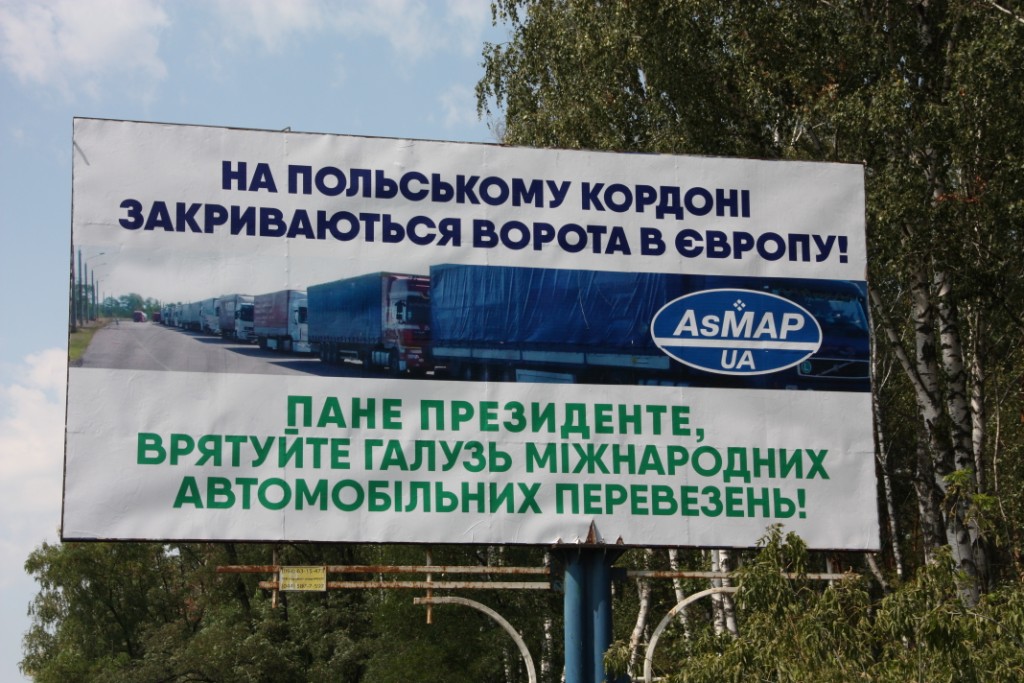 З метою привернення уваги громадськості та вищих посадових осіб держави до проблем із забезпеченням вітчизняних перевізників дозволами іноземних держав на право здійснення перевезень, АсМАП України розміщено бігборди на трасі Київ – Бориспіль із закликом до Президента України врятувати галузь міжнародних автомобільних перевезень.