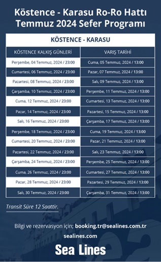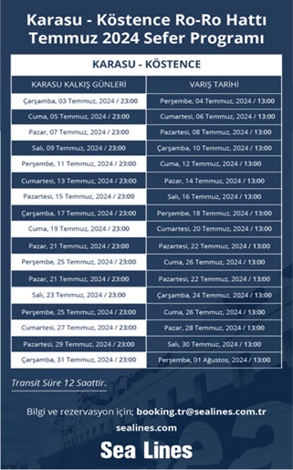 Перевізники, які хочуть скористатися лінією Ro-Pax, можуть зв’язатися з судноплавною компанією booking.tr@sealines.com.tr, www.sealines.com.tr.