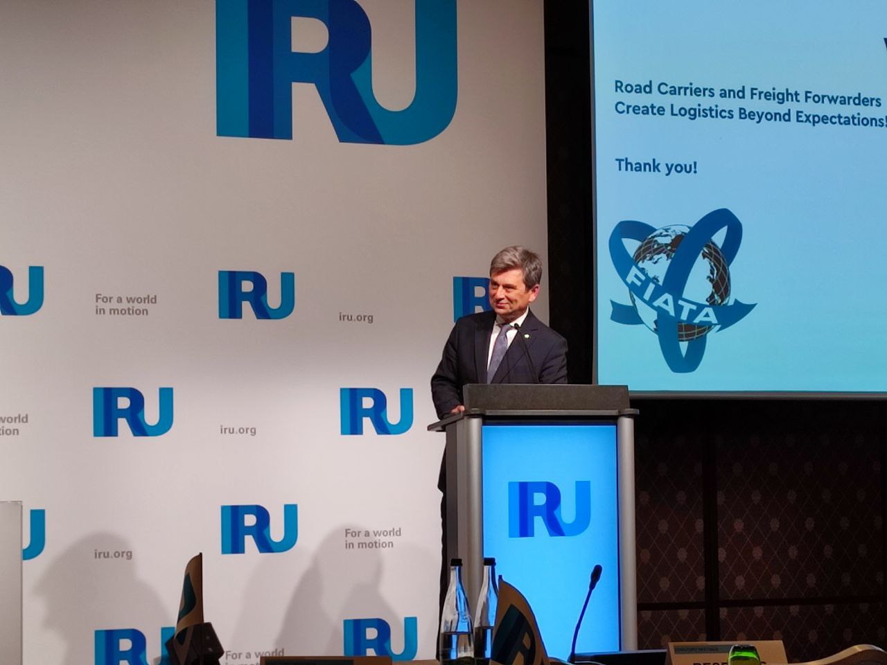 Президент АсМАП України Леонід Костюченко виступив на засіданні Генеральної асамблеї IRU і поінформував присутніх про поточний стан справ з нестачею водіїв в Україні, а також запропонував розглянути можливість збільшення терміну перебування для професійних водіїв до 150 днів за плаваючий період 180 днів, або видачу спеціальних «транспортних віз», які б дозволяли водіям перебувати до одного року у країнах із візовим режимом.