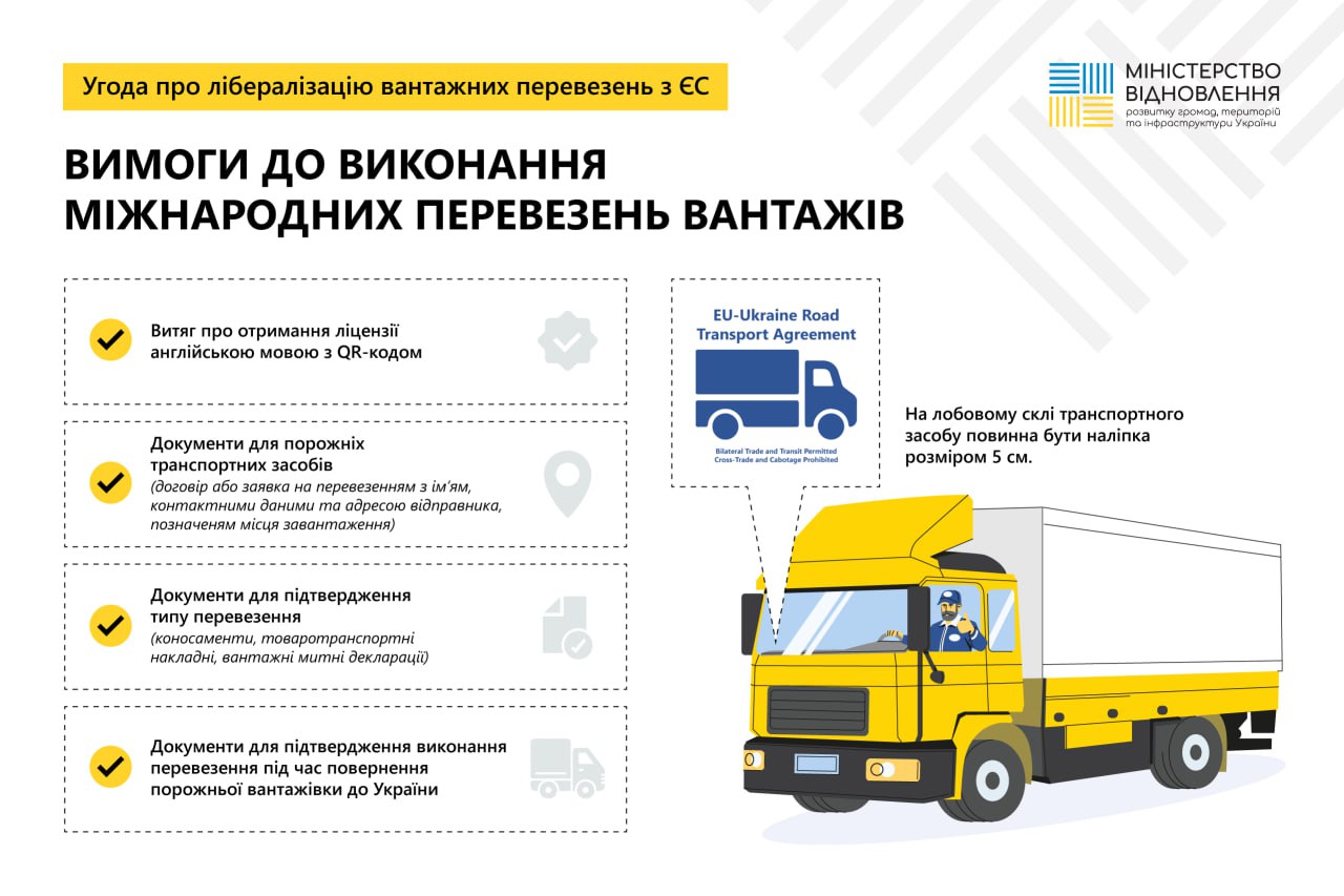 Українським перевізникам достатньо мати на борту вантажівки витяг про отримання ліцензії на міжнародні перевезення вантажів англійською мовою з QR-кодом. Отримати його можна у особистому кабінеті перевізника.
