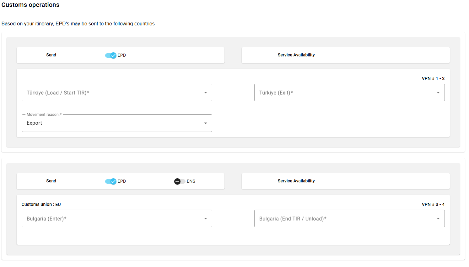 одна декларація ENS подається на кожну партію вантажу. Наприклад EPD з двома партіями створить дві декларації ENS (по одній на кожну партію);